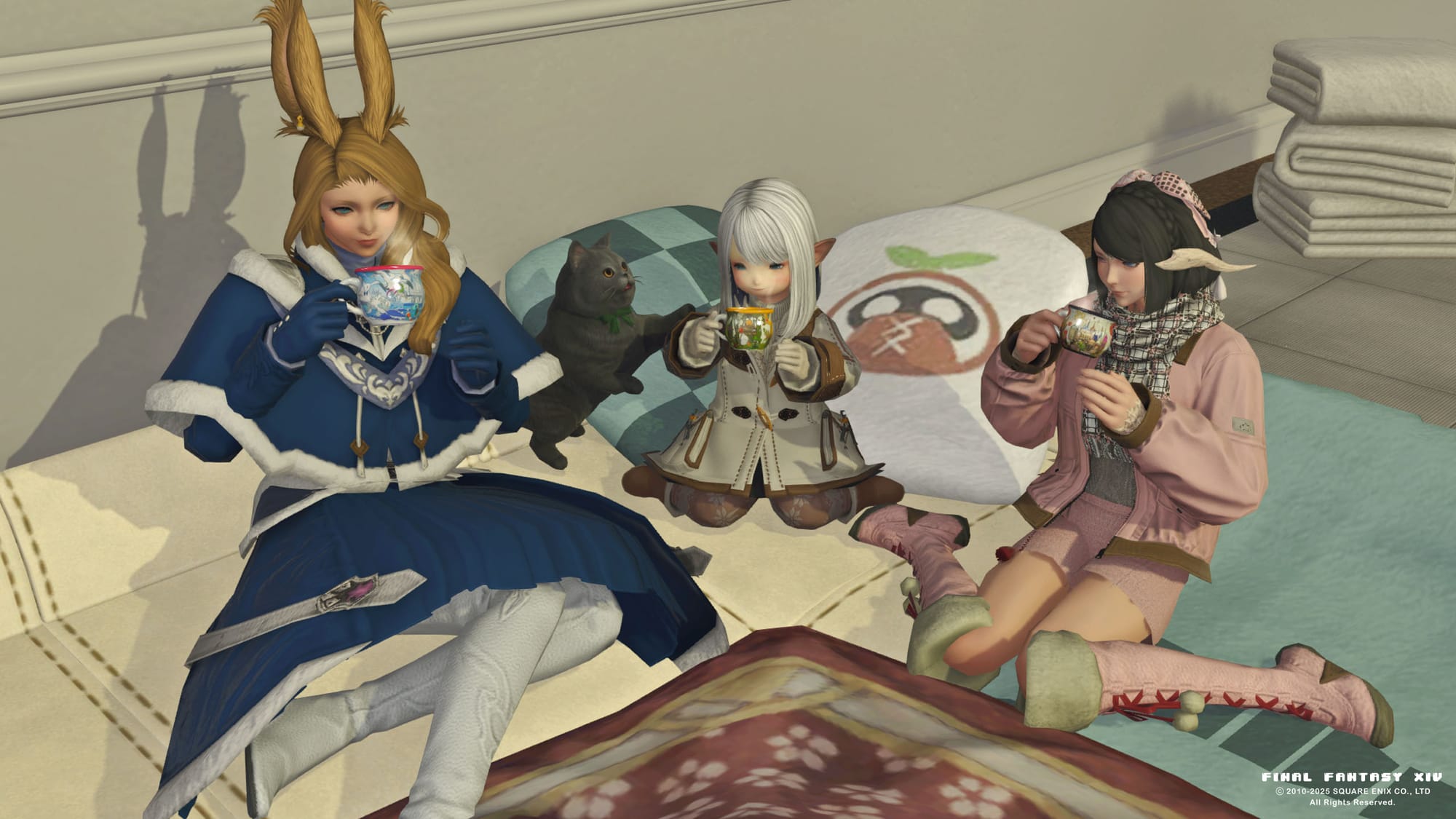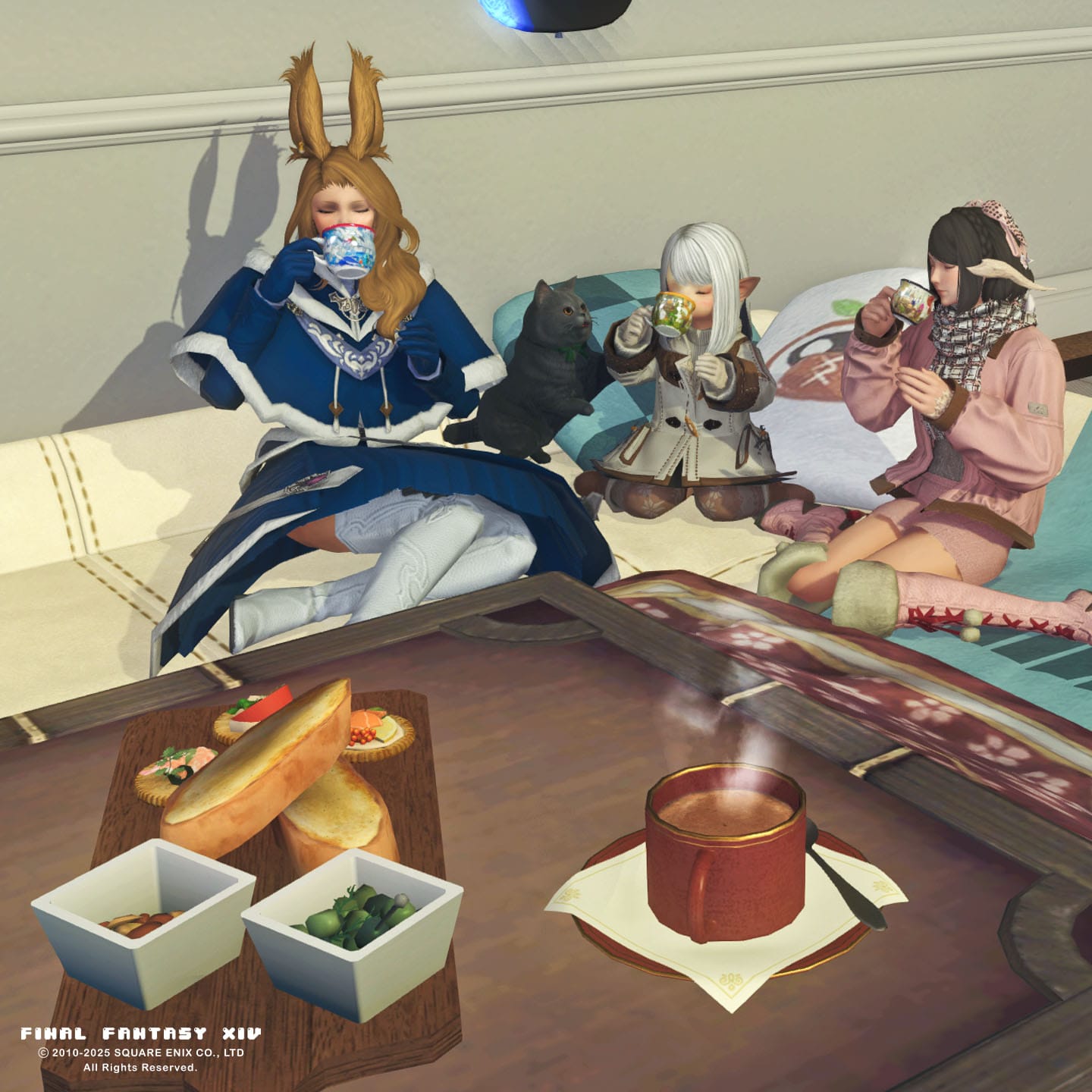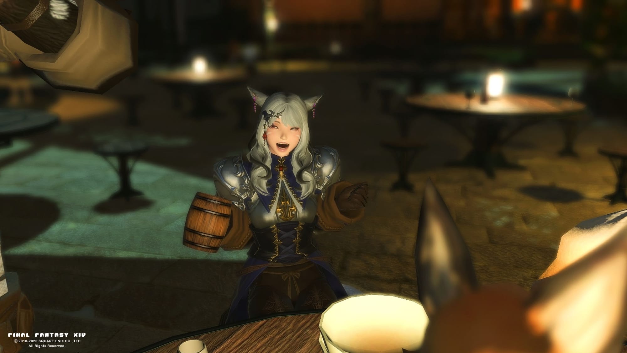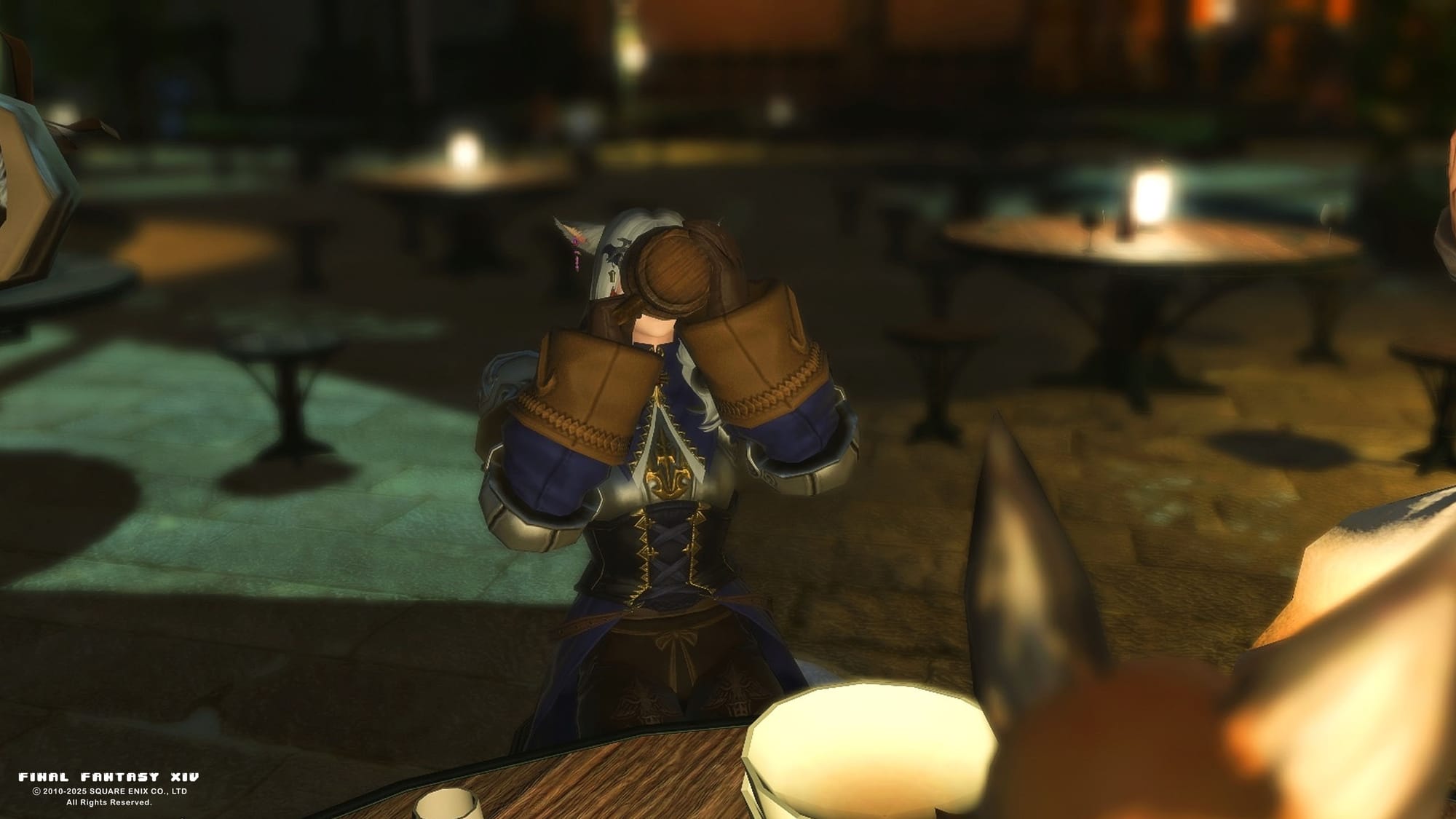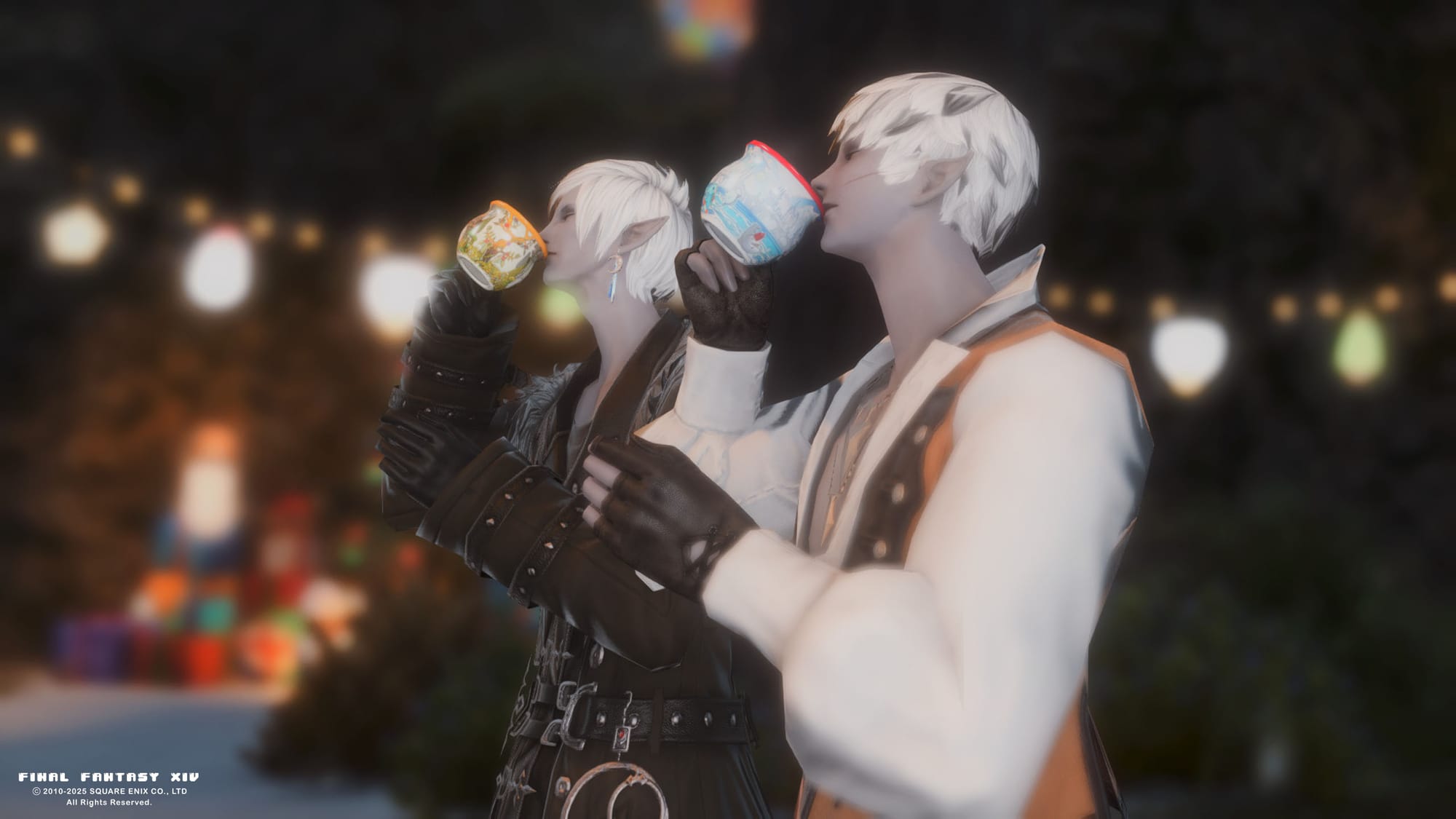 Taking it slow, while enjoying some of the best winter drinks Eorzea has to offer. Sitting close, sharing warmth, and letting the night pass peacefully.